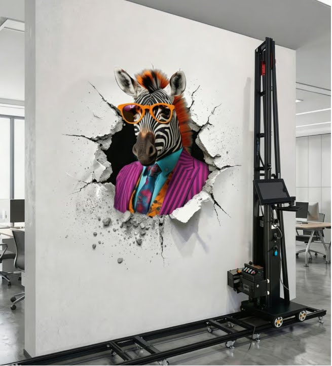 Druk ścienny UV to technologia nanoszenia grafiki bezpośrednio na ścianę przy użyciu specjalistycznej drukarki oraz atramentów utwardzanych światłem UV LED.