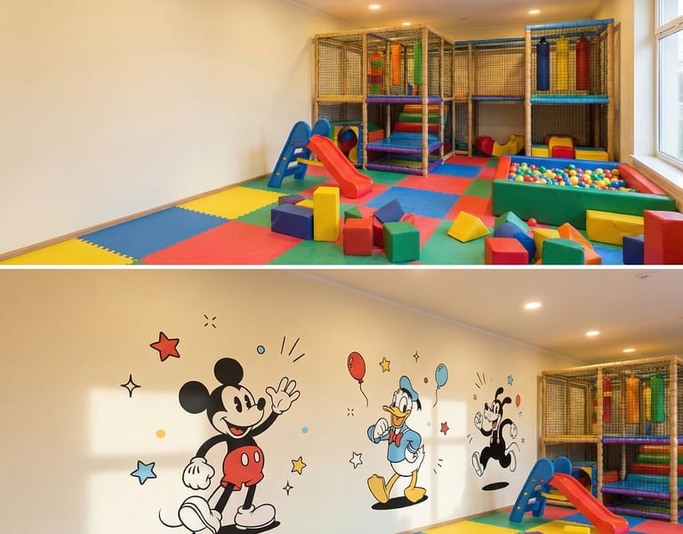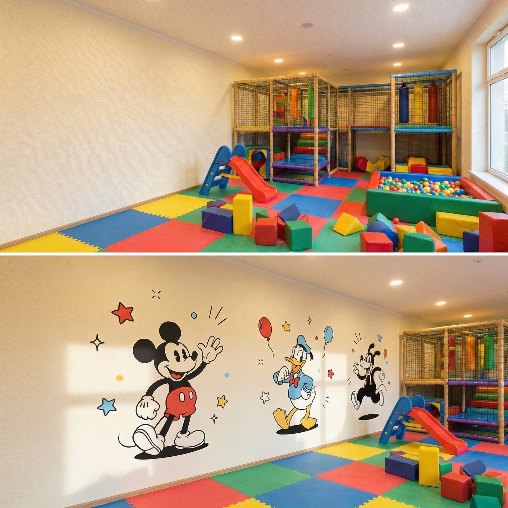 To realny nadruk na powierzchni, a nie folia czy fototapeta — grafika staje się częścią ściany.