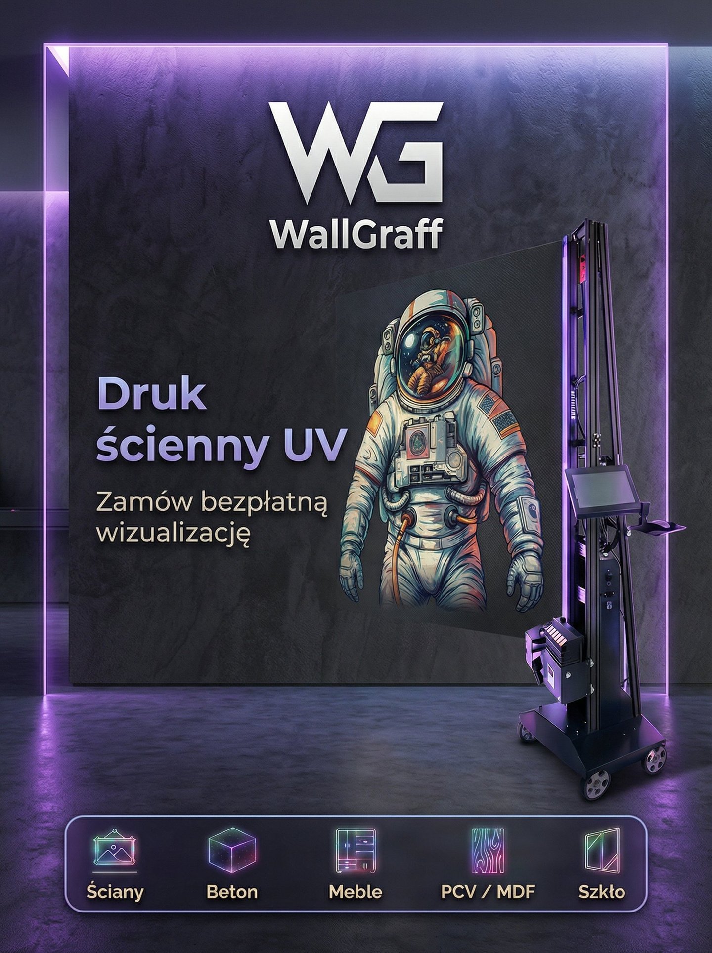 Druk UV na ścianach i powierzchniach pionowych, trwały i precyzyjny.